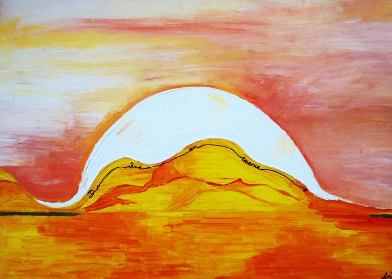 J’aime m’inspirer d’une phrase, d’un mot, partir d’une intention et d’un geste pour faire vibrer l’ensemble grâce aux couleurs et aux formes. Rendre les mots vivants, vibrants, émerveillés. Parfois les couleurs surgissent de moi, comme un besoin de liberté totale pour exprimer et célébrer !